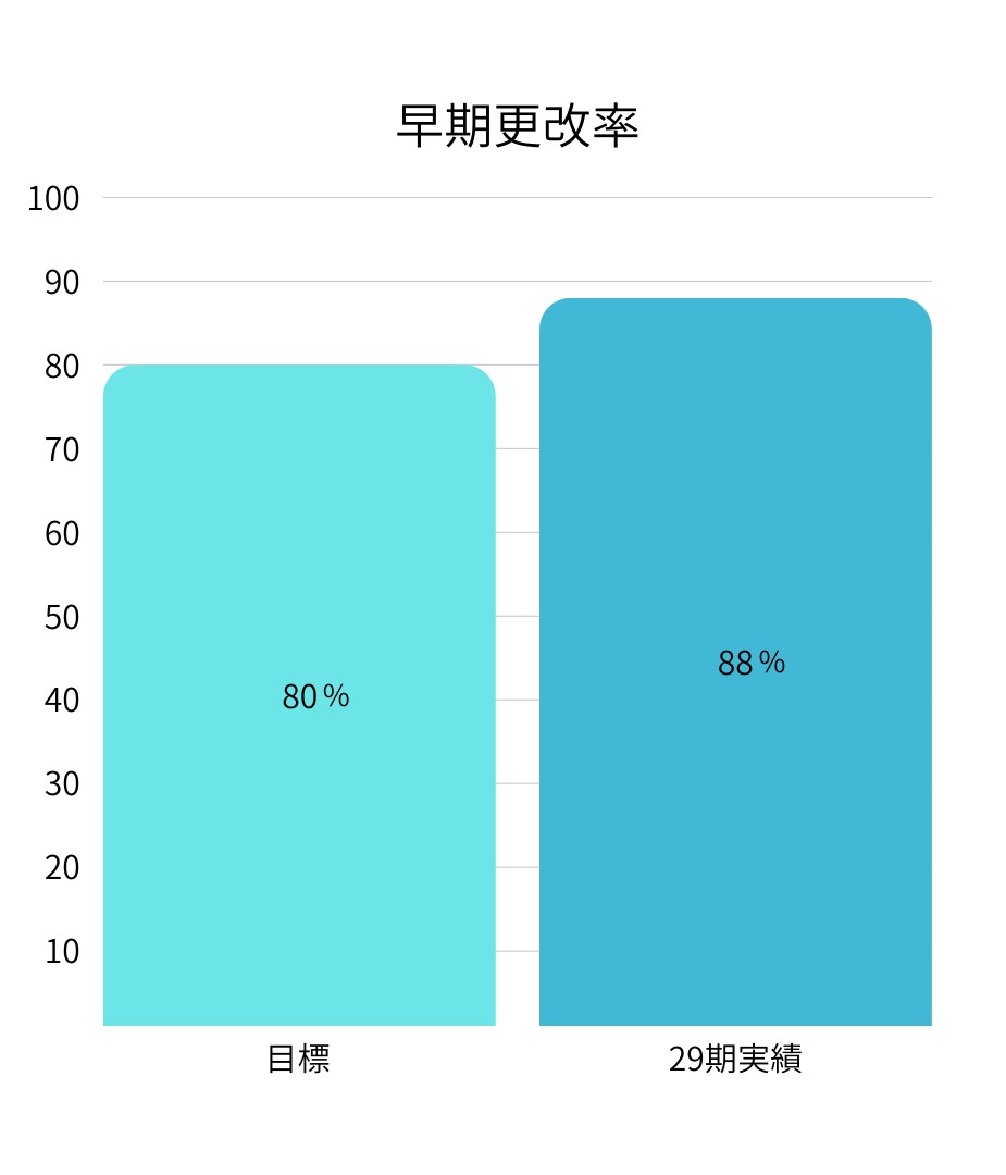 お客様へ早期に更新のご案内を実施し、余裕を持って更新手続きを行うことで、お客様に安心・最適な保険内容をご選択いただけるよう取り組んでまいります。